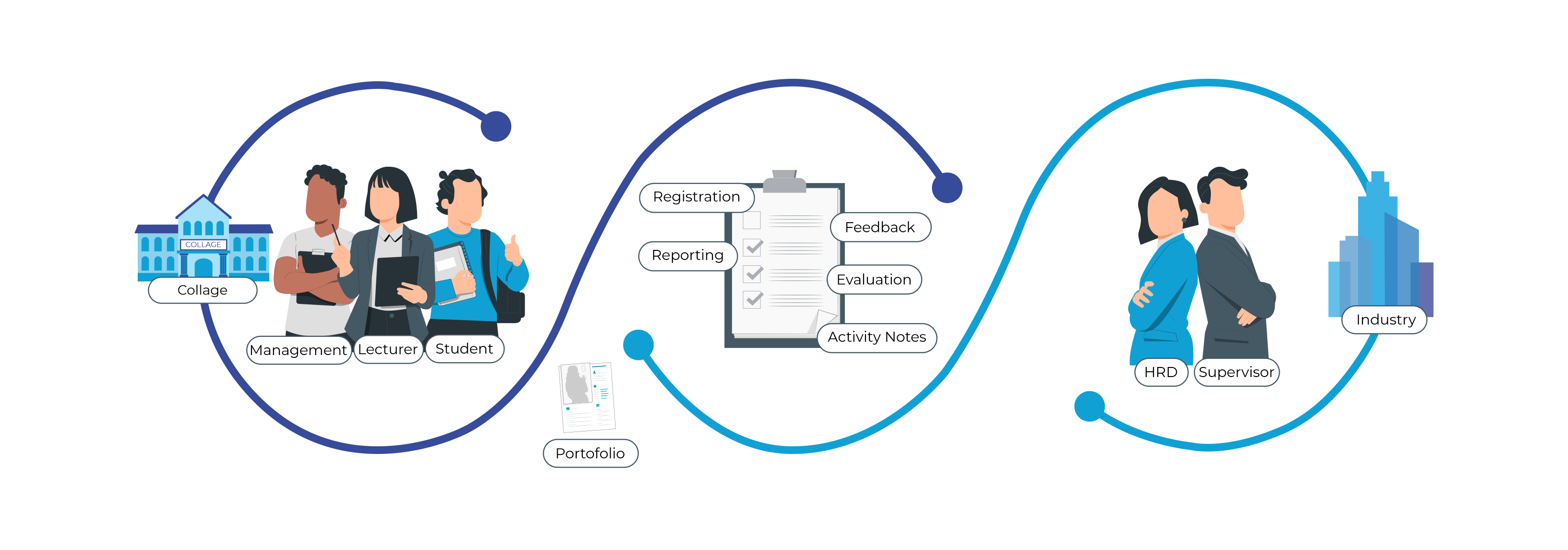 Student Internship, Lecturer and Industry. student Internship mostly consists of Polibatam Student who has Internship as Subject a.k.a 5th Semester Polibatam Student. Lecturer consists of all of lecturer available in Polibatam, whose ready to guide student through internship process. Industry consists of any company that has cooperation with Polibatam or has Polibatam Student working with them. Each Industry will need to assign HRD and Supervisor to use this services.